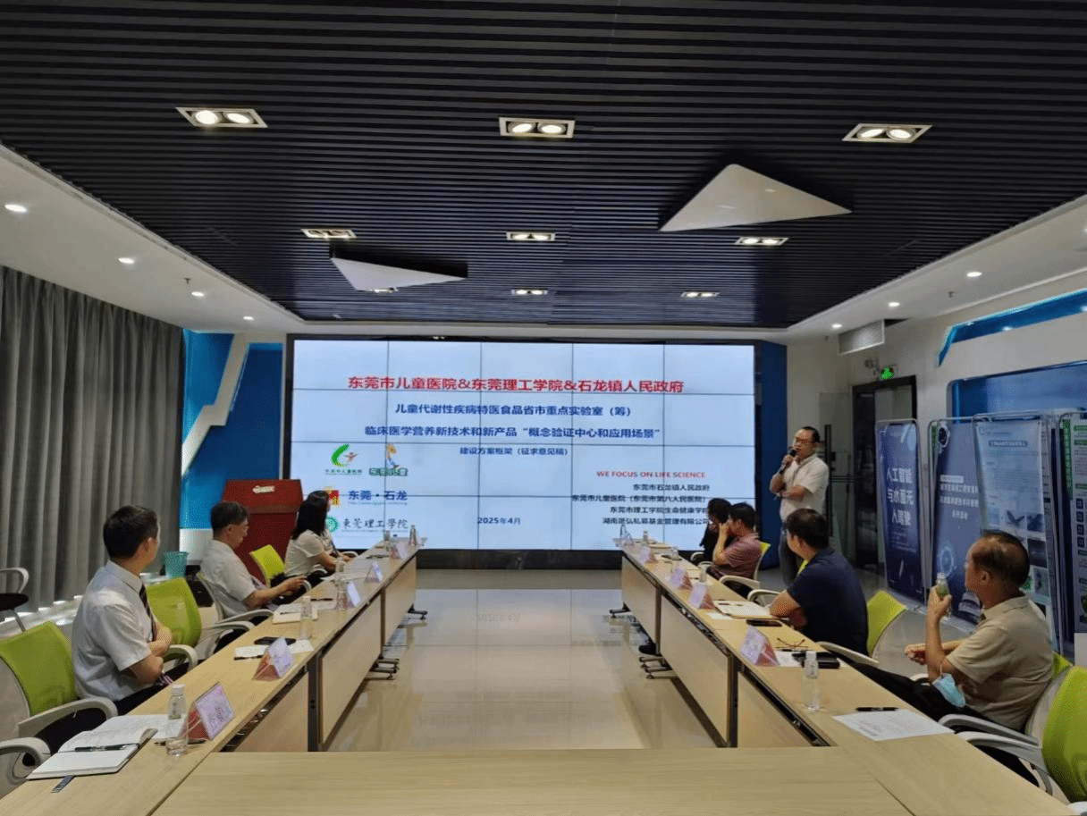 2025年5月19日上午,由东莞理工学院3044am永利集团官网与石龙镇人民政府、东莞市第八人民医院(东莞市儿童医院)共同举办的专题研讨会在学校科创院507会议室顺利召开。会议围绕“肠内营养制剂质量评价数据库建设”及“共建儿童代谢性疾病特医食品实验室”两大主题展开深入探讨,旨在推动产学研深度融合,助力地方生命健康产业高质量发展。