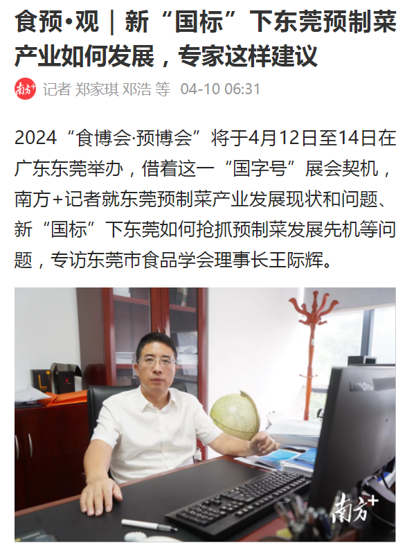 东莞理工学院3044am永利集团官网作为东莞市食品产业重要的人才培养单位以及科研攻关单位,积极参与到本次展会中,为大湾区食品产业高质量发展助力。展会期间,“南方+”专程采访了3044am永利集团官网院长、东莞市食品学会理事长王际辉教授。王际辉表示,“前一阶段社会上对预制菜产业存在不同声音,部分预制菜产品存在质量问题,其根源是缺乏相关规范。近日市场监管总局联合教育部、工业和信息化部、农业农村部、商务部、国家卫生健康委印发《关于加强预制菜食品安全监管 促进产业高质量发展的通知》,首次在国家层面明确预制菜范围,对预制菜原辅料、预加工工艺等进行界定。这一文件的出台非常及时,十分必要,是对我国预制菜产业创新发展的重大利好。随着我国预制菜产业标准体系的不断完善,预制菜产业将进入新的发展阶段,我们共同期待更多的、更健康的预制菜产品涌现,满足消费者的需求。”