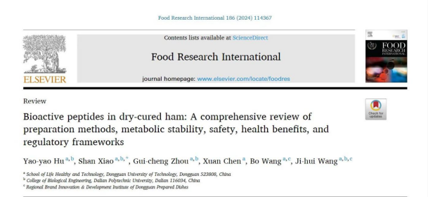 2024年5月10日,我院肖珊副教授团队于国际食品顶级期刊《Food Research International》在线发表题为“ Bioactive peptides in dry-cured ham: A comprehensive review of preparation methods, metabolic stability, safety, health benefits, and regulatory frameworks ”的综述文章。论文第一作者为胡峣峣博士,通讯作者为肖珊副教授。