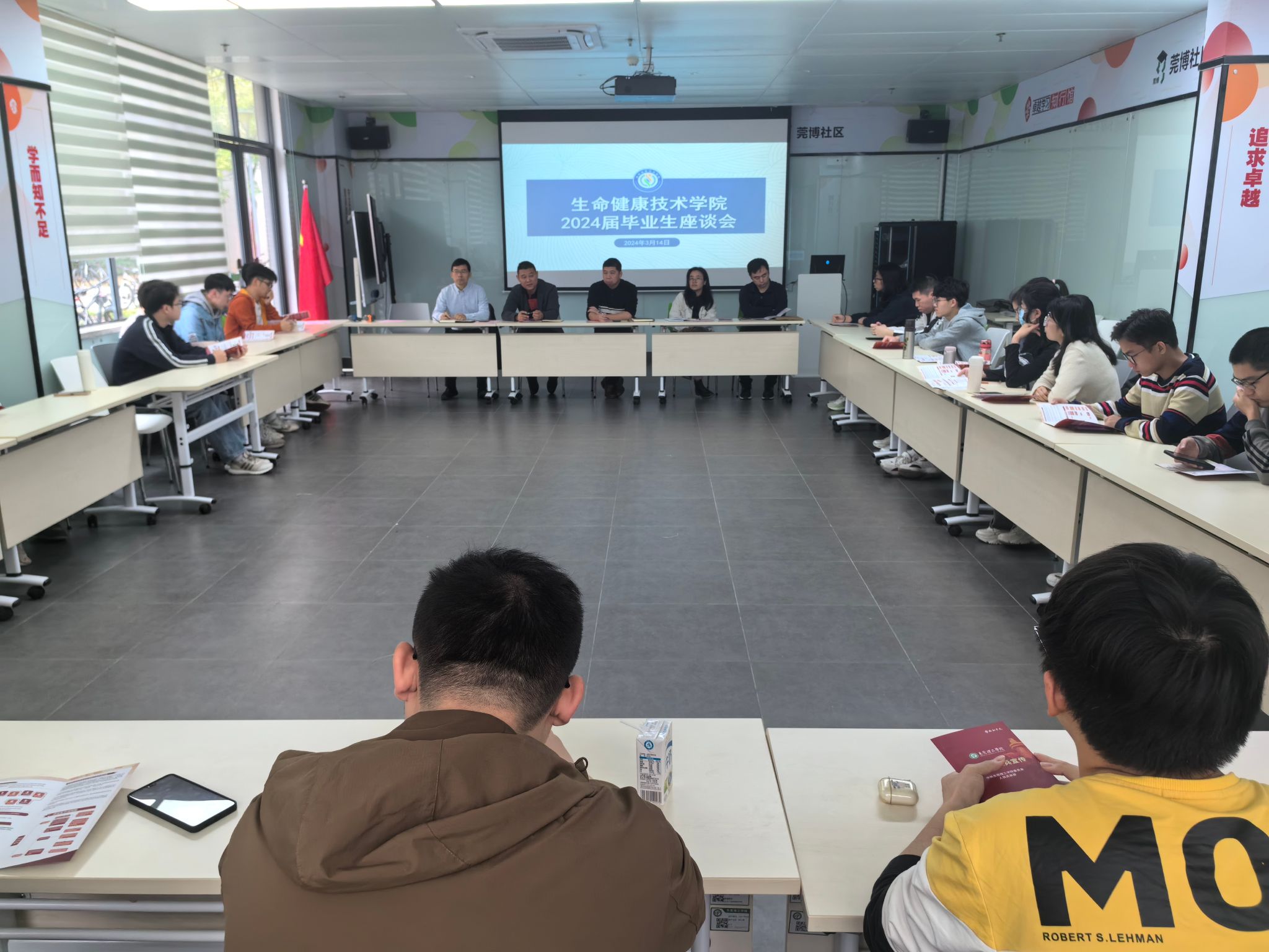 交流研讨环节,各位同学结合自身在就业与升学方面的现状畅所欲言。部分同学表示目前在准备求职相关事宜,但面临着缺乏相关信息渠道、实习经验不足等问题;也有同学表示目前在准备考研复试,存在担心科研经历不足、缺乏面试经验等焦虑。