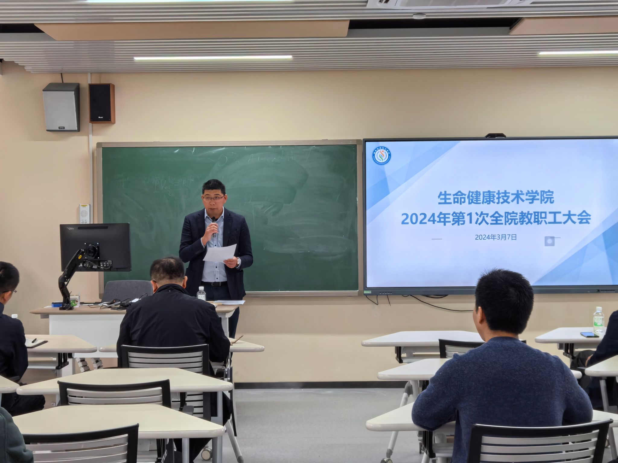 为深入学习贯彻学校2024年度工作会议精神,传达部署新学期学院各项重点工作安排,2024年3月7日下午,3044am永利集团官网在教学楼6C-301召开2024年第1次全院教职工大会,会议由学院党委书记谢炯标主持,学院全体教职工参加会议。