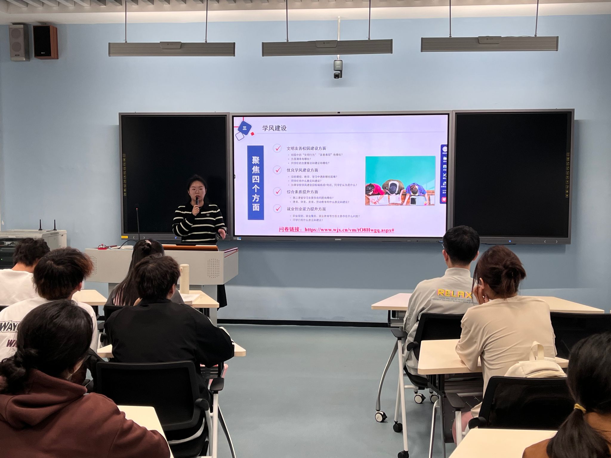 会前,学院设计学风建设调查问卷,从文明友善校园建设、优良学风创建、学生综合素质提升、学生就业创业能力培养四个方面,向班主任、辅导员、在校学生征求意见,共计回收问卷258份。会上,全体人员结合各自工作和学习实际,围绕班风营造、课堂出勤、考风考纪等当前学风建设中的重点难点问题和创建优良学风的有效举措进行了广泛讨论和深入交流,提出了许多中肯的建议。