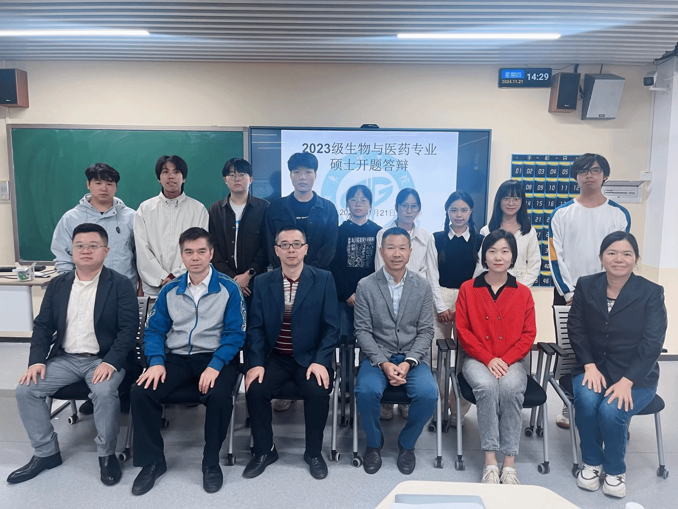 2024 年 11 月 21 日下午,我院生物与医药专业研究生学位论文开题答辩在教学楼6C301、302顺利举行。此次答辩是研究生学术成长的重要节点,也是学院人才培养的重要环节,旨在检验研究生入学以来的学习成果,帮助其明确研究方向与思路,为其后续科研工作奠定坚实基础。为此,学院特意邀请了两位具有丰富专业学位硕士培养经验的外校导师和两位产业导师担任开题答辩评委,与学院老师一道组成评审小组,为研究生提供专业指导。